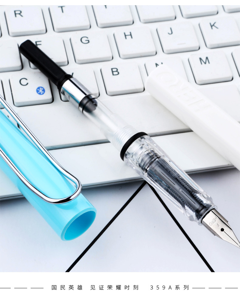 【英雄359 A】ヒーロー(HERO)万年筆359 A正姿学生執務習字イリジウム金万年筆サインペン薄厚片工芸イリジウム金ペン先(インク袋6本を添付)青白F尖【相場見積り価格評定】-