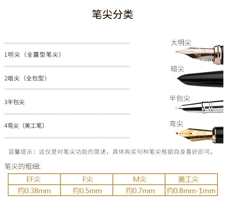 ヒーロー(HERO)万年筆黒金鋼色イリジウム金の万年筆インクペン明のペン先1095