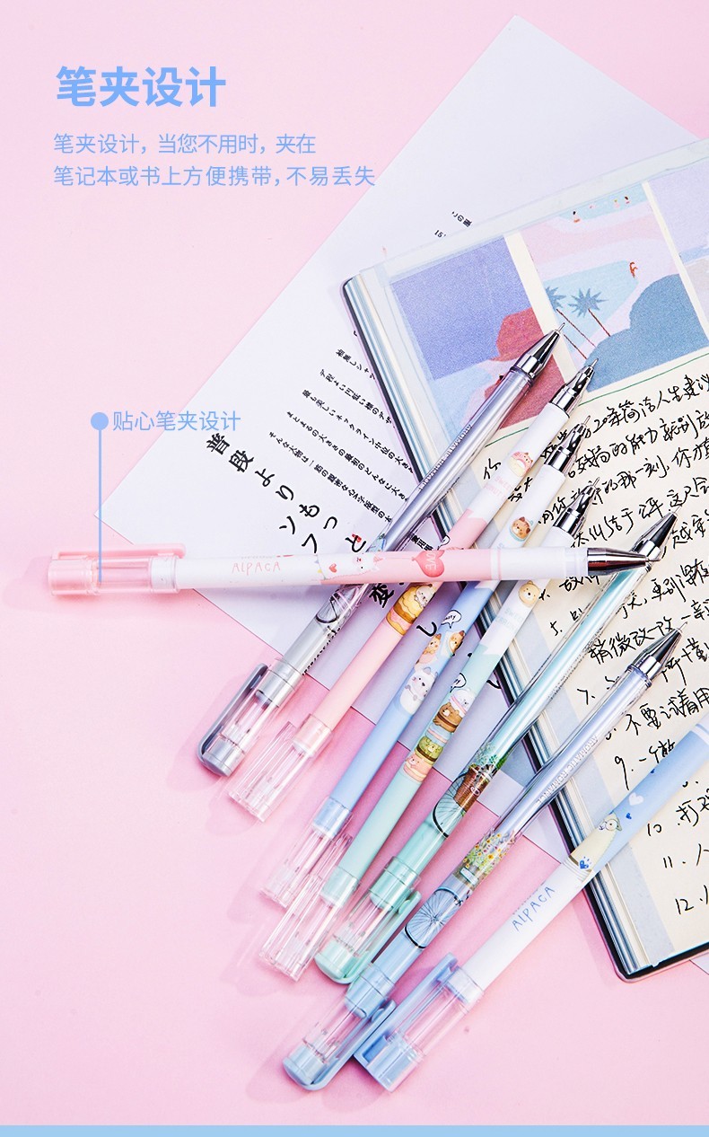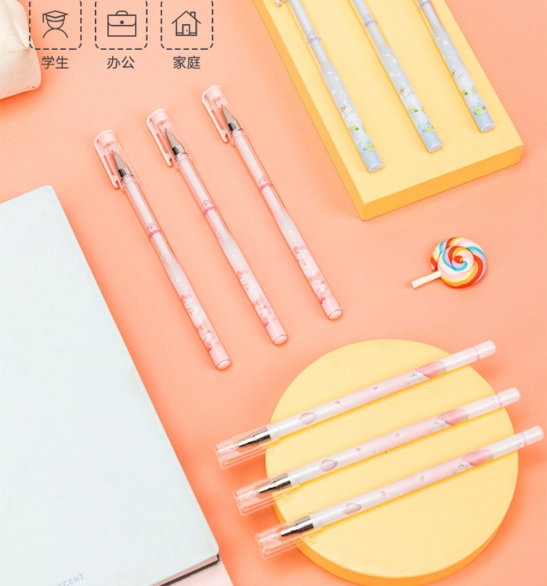 丈夫な文房具の中性のペンの学生は黒色の小さい清新でかわいい漫画でペンの炭素の水性の万年筆の全針の筒を署名して0.38 mmの全針管の24本/筒の33663を詰めます。