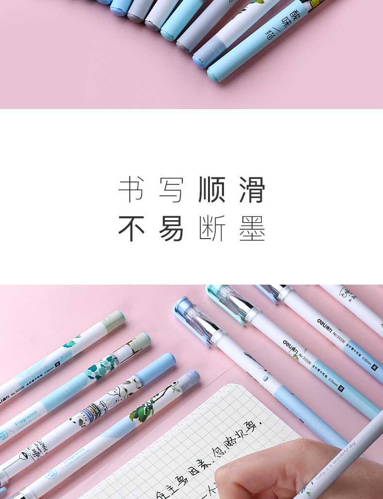 得力文具中性笔学生用黒小清新可爱いキャラクターのサインペンを使って、全针管を0.38 mmにして、24本/筒33663本を包装します。