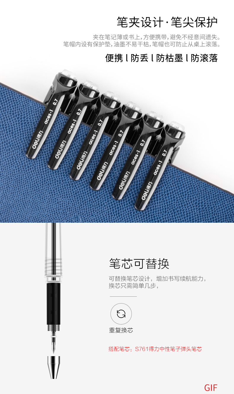 | 商品名称 | 得力(deli)0.7太字中性ペン1.0 mm黒い太い筆画の署名ペン水墨芯ビジネス炭素硬筆習字専用1.0 mm中性筆6本S 34 |