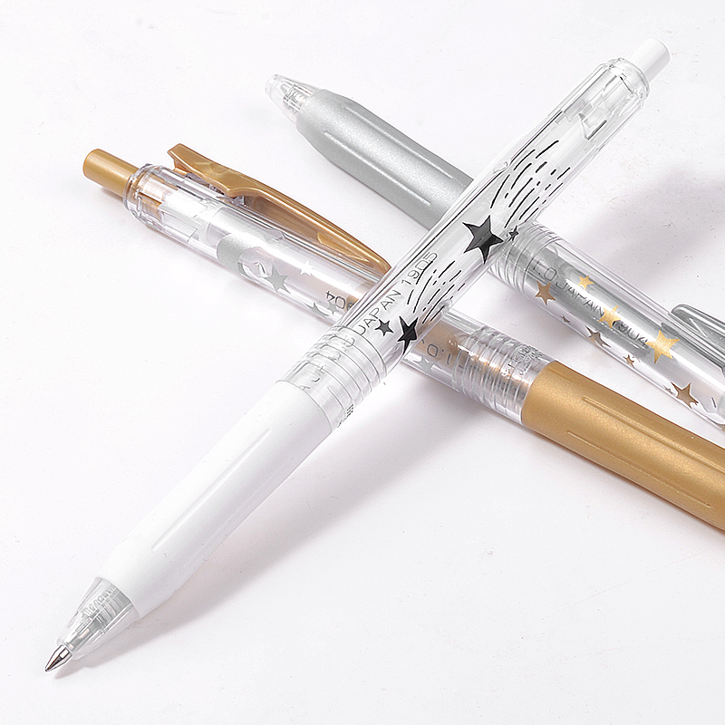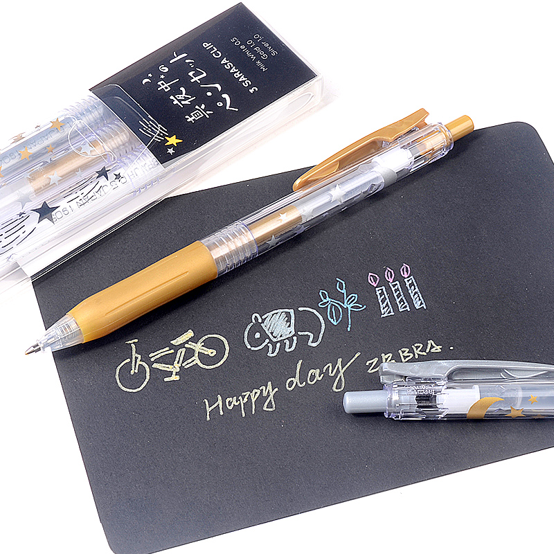 日本のシマウマのニュートラル旗艦店のジェルペンの金属色の白色JJ 15を限定して水筆の0.5項の絵描きのsarasa筆の制限版の1.0金色のシマウマの速さ+透明な竿の銀河系の6本の0.5黒を押します。
