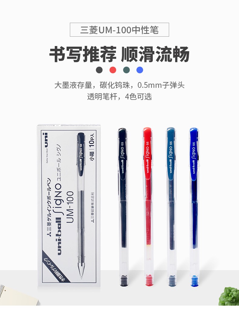日本原装uni三菱UM-10中性ペンUM 100三菱水墨0.5 mm赤青青青青青青青のサイン水性ペン学生筆記試験文具黒10本/箱【写真価格ブランド見積】-