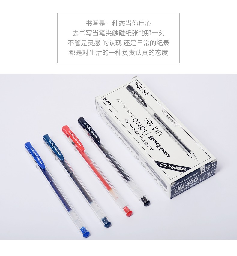 日本原装uni三菱UM-10中性ペンUM 100三菱水墨0.5 mm赤青青青青青青青青青のサイン水性ペン学生筆記試験文具黒10本/箱