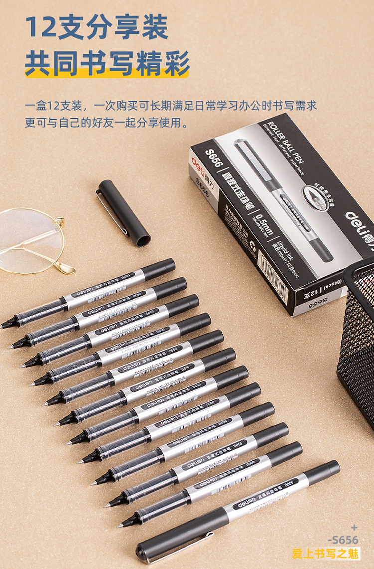 得力(deli)中性ペン黒直液式ペン学生試験12本/ケースS 626事務用品0.5 mm直液式S 626黒