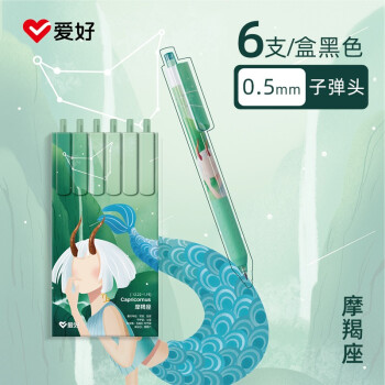 趣味(AIHAO)0.5 mm弾丸ヘッド学生オフィス文房具黒のサインペン試験ペン星座按摩中性ペンGP 2800-6本セット