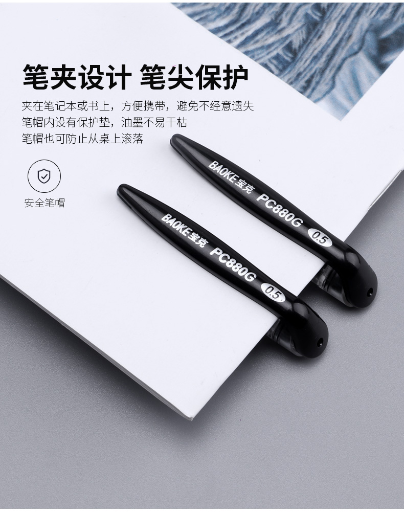 宝克(BAOKE)PC 880 G速乾0.5 mmの弾丸ヘッド中性ペン学生試験水筆オフィス署名ペン黒12本/箱