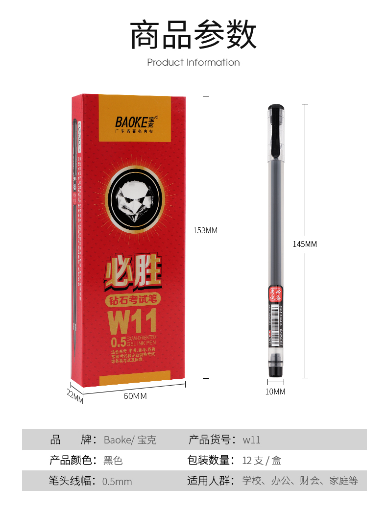 宝克(BAOKE)W 11ダイヤモンド試験ペン0.5 mm中性ペンサインペン黒12本/箱