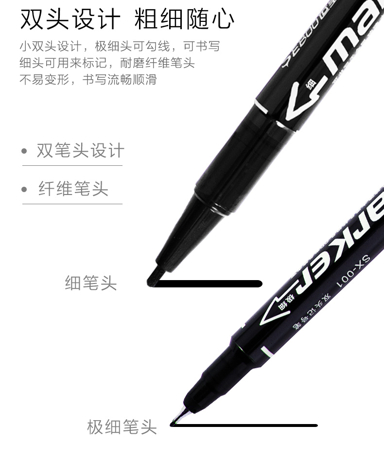 世宝(sebook)50本の油性の記号のペンを詰めて小さい双頭の細いチェック線マークの筆の美術会議の署名のペンは50本の混じる色を拭いてはいけません(黒30赤の10青の10)