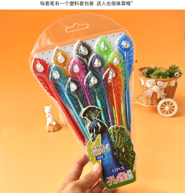 日本と韓国の文具タイガー12色の羽クジャク色の中性ペンダイヤモンド頭学生の中性ペン可愛い羽クジャク色の中性ペン12色の中性ペン【写真価格ブランドのオファー】