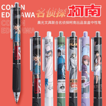 朝の光名探偵コナンペン限定ブラインドボックスの中性ペン大容量速乾水筆0.5 mm黒いアニメ・漫画の連名は学生試験用のサインペンで6本のブラインドボックスの金を入れます。