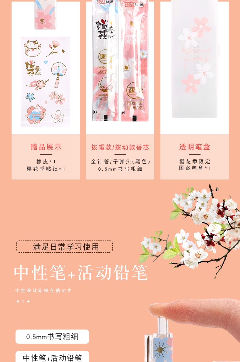 朝の光優品桜シーズン限定セット中性ペンの自動鉛筆消しゴム学生用水墨0.5小清新創意可憐少女心幻ピンクサイン全針管自動鉛筆六点セット【写真価格ブランド見積】-