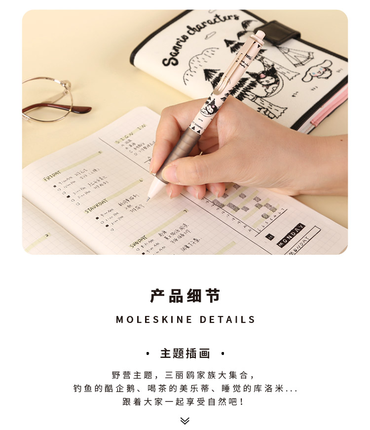 kinborX三丽鴎联名款6支按动波尔班0.5 mm速乾尖錐st学生用試験黒炭素サインペン一緒にキャンプしましょうDT 52031