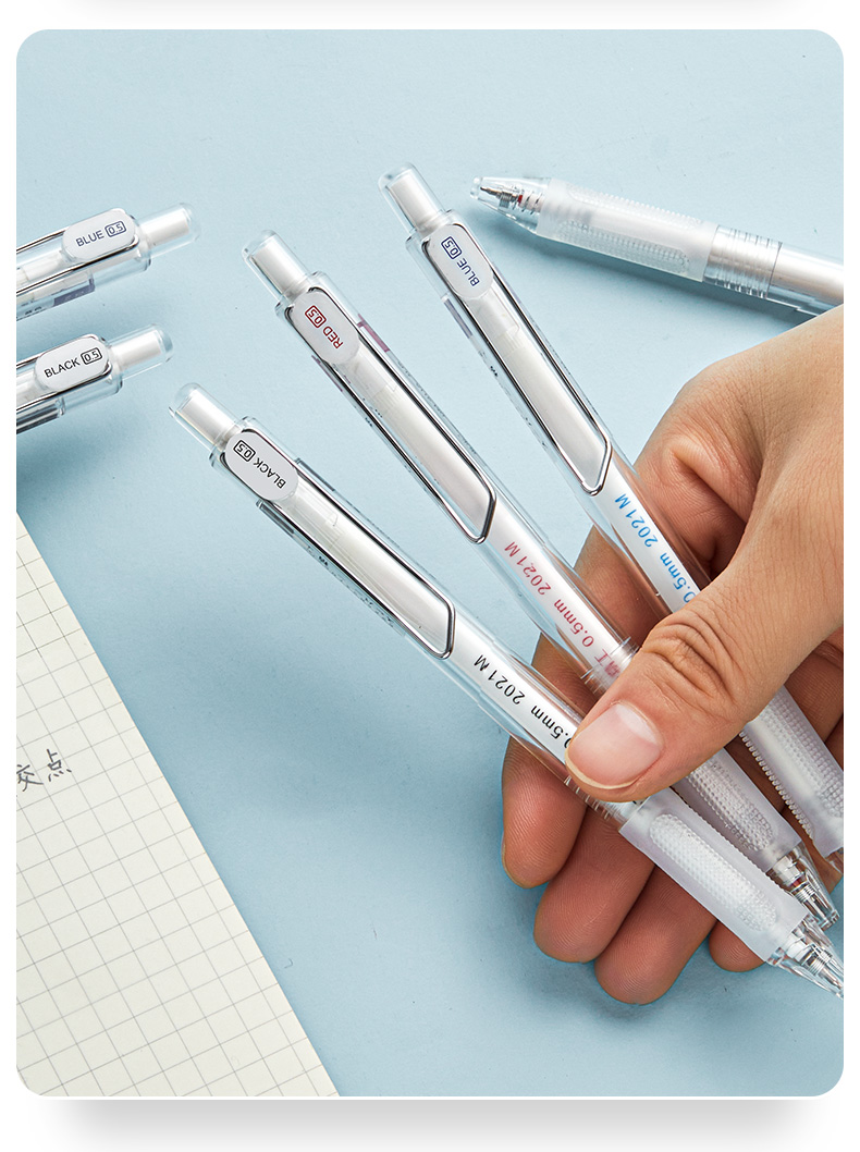 六品堂东米按动球纸学生专用考试刷题笔ins日系高颜值0.5 mm押圧式考试黑色球面笔透明款-4黑+1蓝+1红