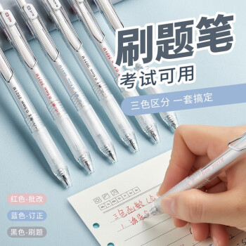 六品堂东米按动波尔班学生专用考试刷题笔ins日系高颜值0.5 mm押圧式考试黑色波尔班透明款-4黑+1蓝+1红【图片价格牌报价】-